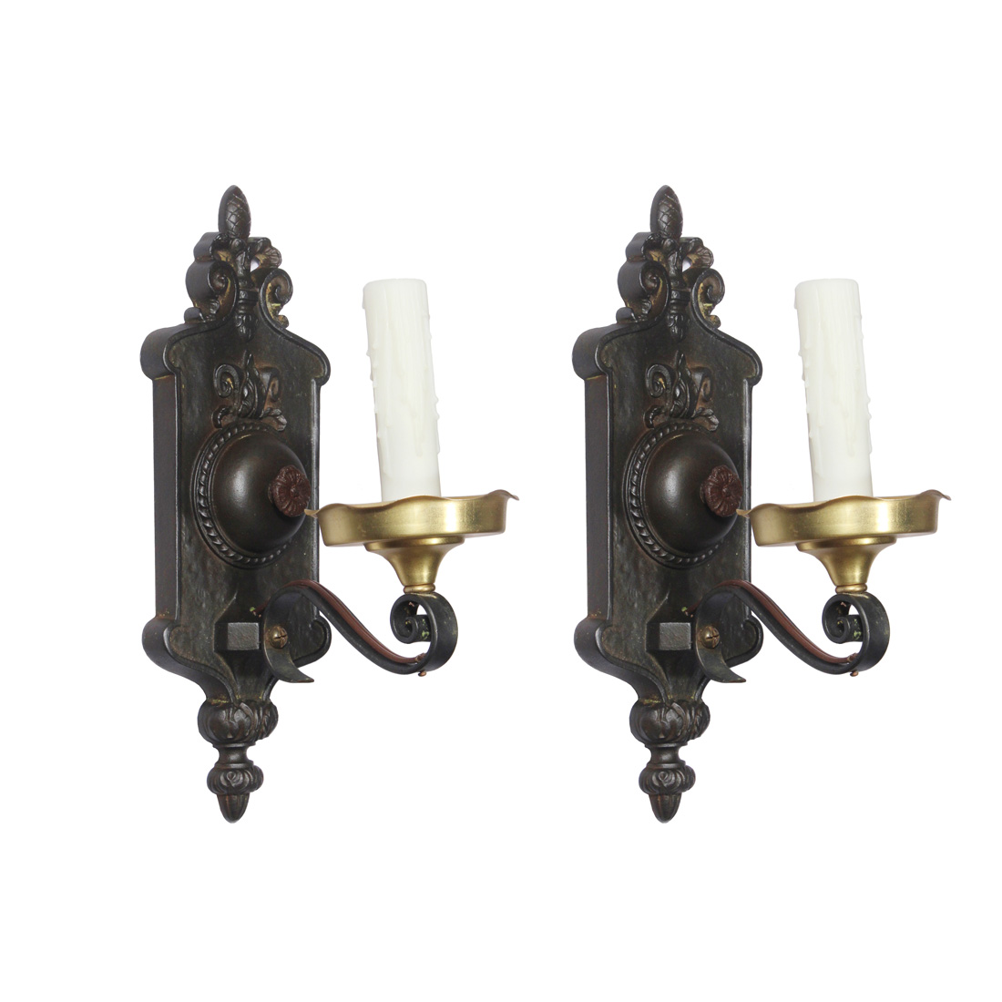 Pair of Antique Two-Tone Sconces, Fleur de Lis