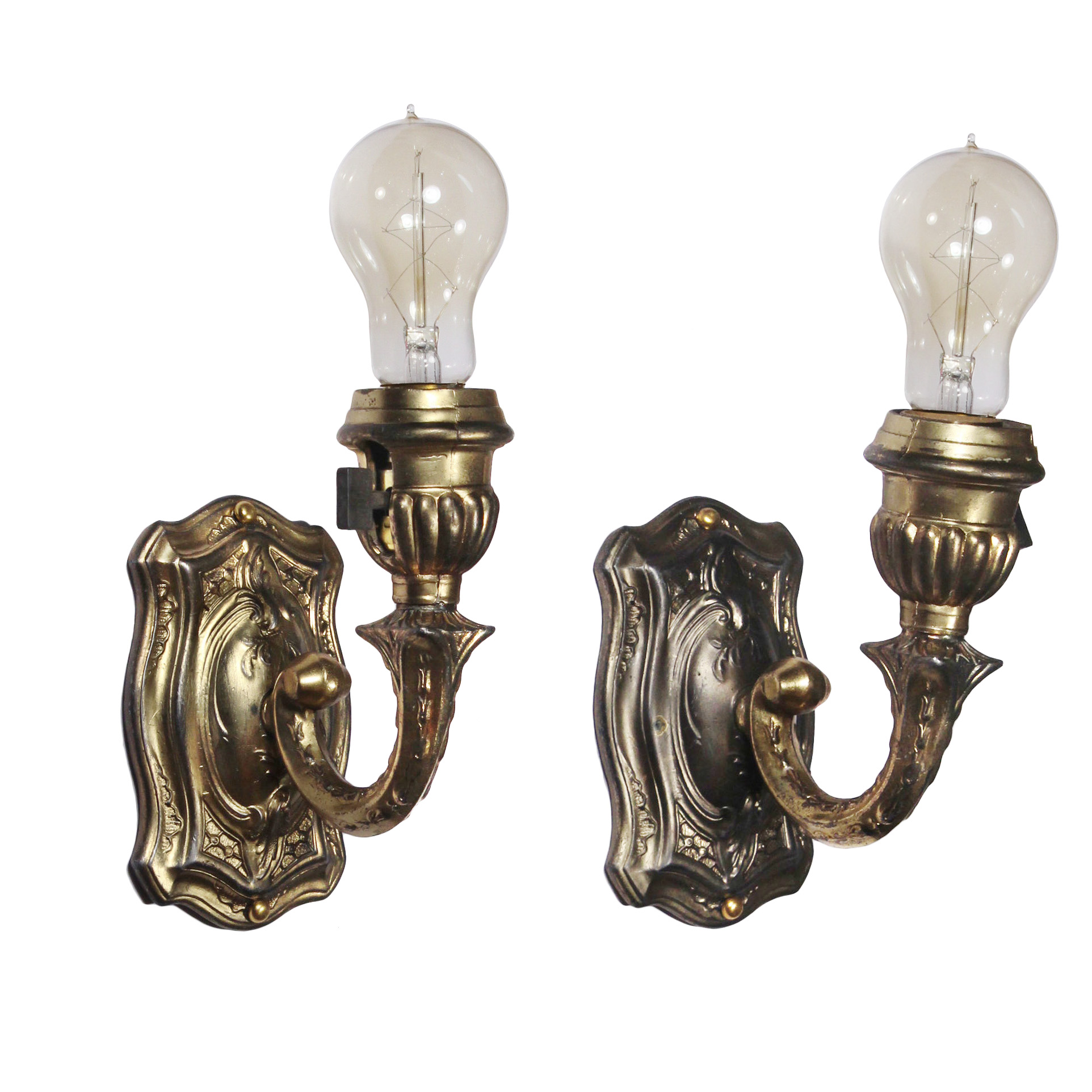 Pair of Antique Two-Tone Sconces, Signed S&A