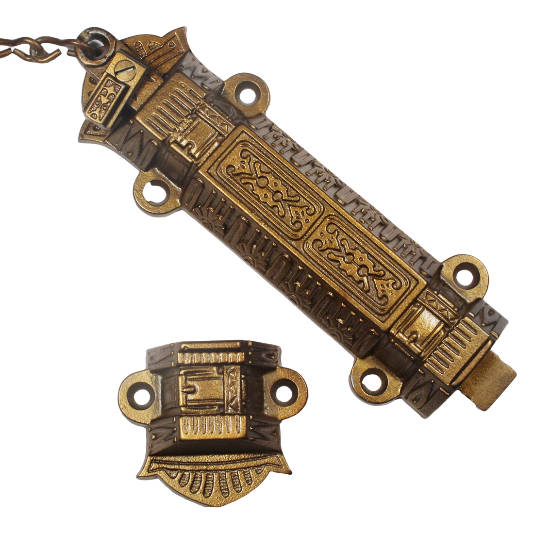 Antique Cast Iron Eastlake Surface Mount Chain Bolt & Catch, Russell & Erwin