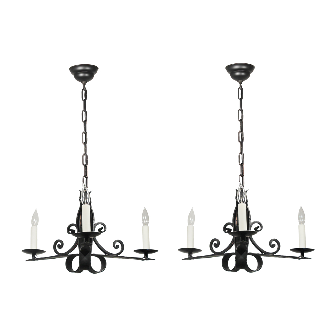 Antique Cast Iron Three-Light Chandeliers, Early 1900’s