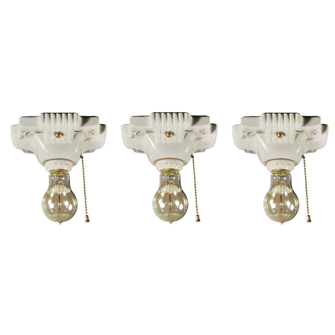 Antique Porcelain Exposed-Bulb Flush Mount Lights, Flowers