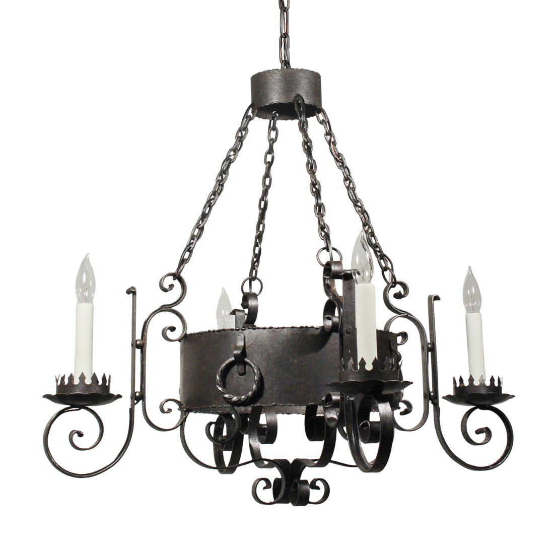 Antique Cast Iron Four-Light Tudor Chandelier, Early 1900’s